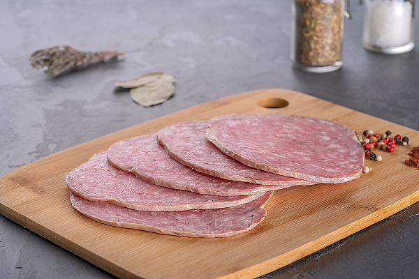 Maigre et gras de porc, sel, poivre, muscade, vin rouge, ail. Conservateurs.