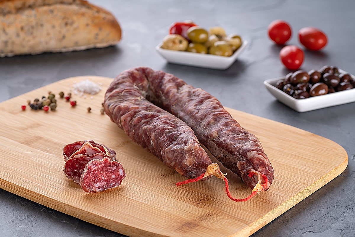 Notre saucisse sèche courbe nature est fabriquée à partir des meilleurs morceaux provenant de cochons élevés en Rhône-Alpes. Ces morceaux sont hachés gros et protégés par un boyau naturel puis séché de façon artisanale. Sa chair fine et savoureuse en fait un produit délicat.